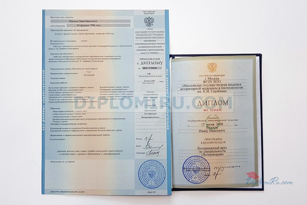Диплом об окончании ВУЗа период с 2004 по 2009 года. В работе используем только настоящие защищённые бланки, которые заполняются по государственным стандартам, а также по образцам реально выданных документов. На фото выше представлены заполненные корочки - точная копия оригинального диплома, выданного одним из Московских университетов.